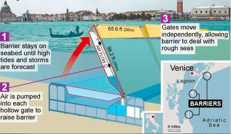 Whilst we should avoid attributing a single event to climate change, the increased frequency of these exceptional tides is reason to be concerned. The combination of a changing climate, rising sea levels and a city that is already sinking is far from ideal. However with this being said, as a result of climate change, the jet stream that drove the Adriatic storm towards Venice will become more frequent and therefore increase the likelihood that Venice will flood more gravely, during the season of the higher spring tides. Venice’s mayor stated that the recent events were, in fact, a result of this and “Now the government must listen, these are the effects of climate change…the costs will be high”. To combat such events occurring more frequently, the city has undergone a project to protect itself. Beginning in 2003, the Mose Project has intended to protect the city from excess flooding through creating an integrated system, which will consist of rows of gates installed at the outer islands, Lido, Malamocco and Chioggia, which would temporarily isolate the Venetian lagoon from the Adriatic Sea and ultimately the high tide. Alongside other measures, including coastal reinforcement and the improvement of the lagoon itself, the Mose project should have the capacity to protect the city from tides of up to 3m. By 2013 reports were announced that claimed more than 85% of construction was completed, yet due to soaring costs, scandals and delays the initial deadline of 2018 was missed and efforts are now being redirected towards a 2022 finish.