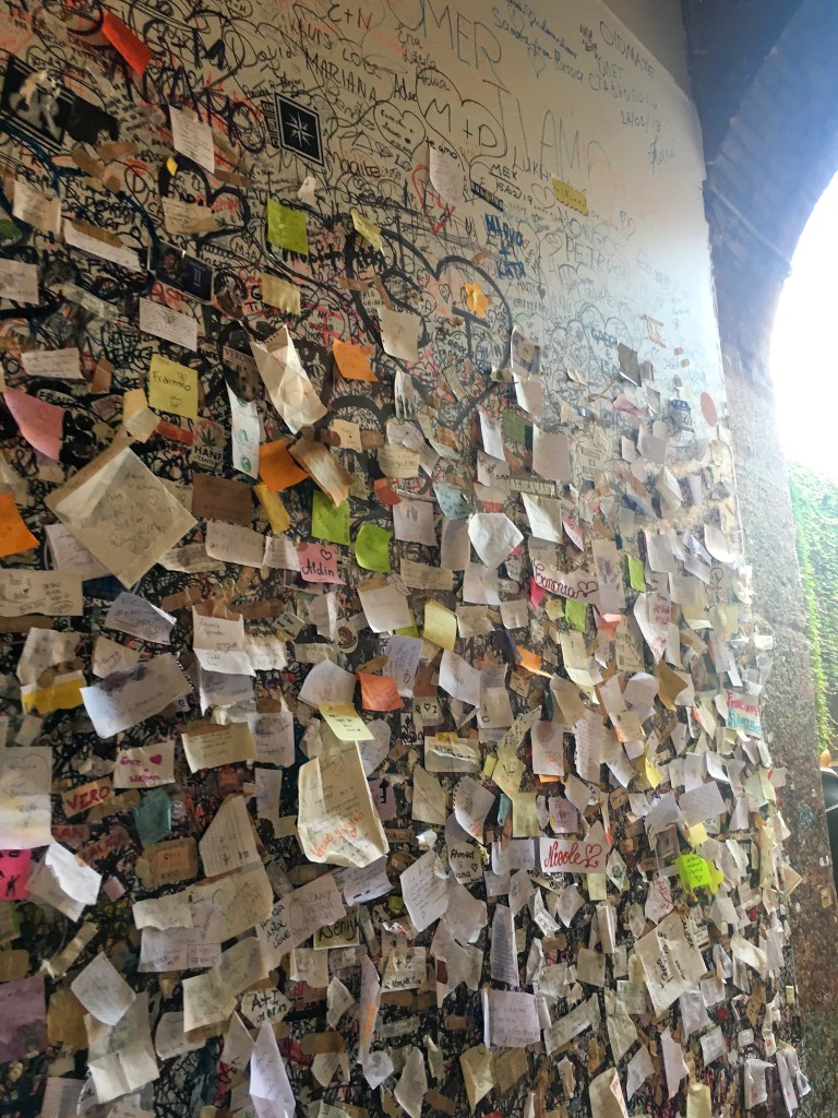 As you make your way through the city, the volume of people intensifies as you edge closer to Juliet’s balcony. The inspiration for Romeo and Juliet’s celebrated scene is located in the heart of the city and does not disappoint. Upon entering the tunnel decorated with love letters; you are presented with the Casa di Giulietta. When visiting with a friend as two extremely single young women, a degree of scepticism arose as we approached the iconic “Wherefore art thou Romeo?” balcony, as the anticipation that love was really in the air was quite daunting. However, to our astonishment, we found the hundreds of thousands of love letters, confessions and heart-breaking notes addressed to Juliet truly remarkable. Aside from their content, the imagination required to find suitable material to record such moments cannot be overlooked; from sanitary pads to plasters, pieces of used chewing gum to train tickets. Humanity’s softer side was apparent. When inside the courtyard of Casa di Giulietta, we found the clear impact of untainted love overwhelming. Notes of adoration provide pleasant reading, even whilst instilling in us an innate sense of loneliness. The bronze statue of Giulietta, where hordes of people queue to pose and rub her breast for luck in love, stands proudly below the balcony.