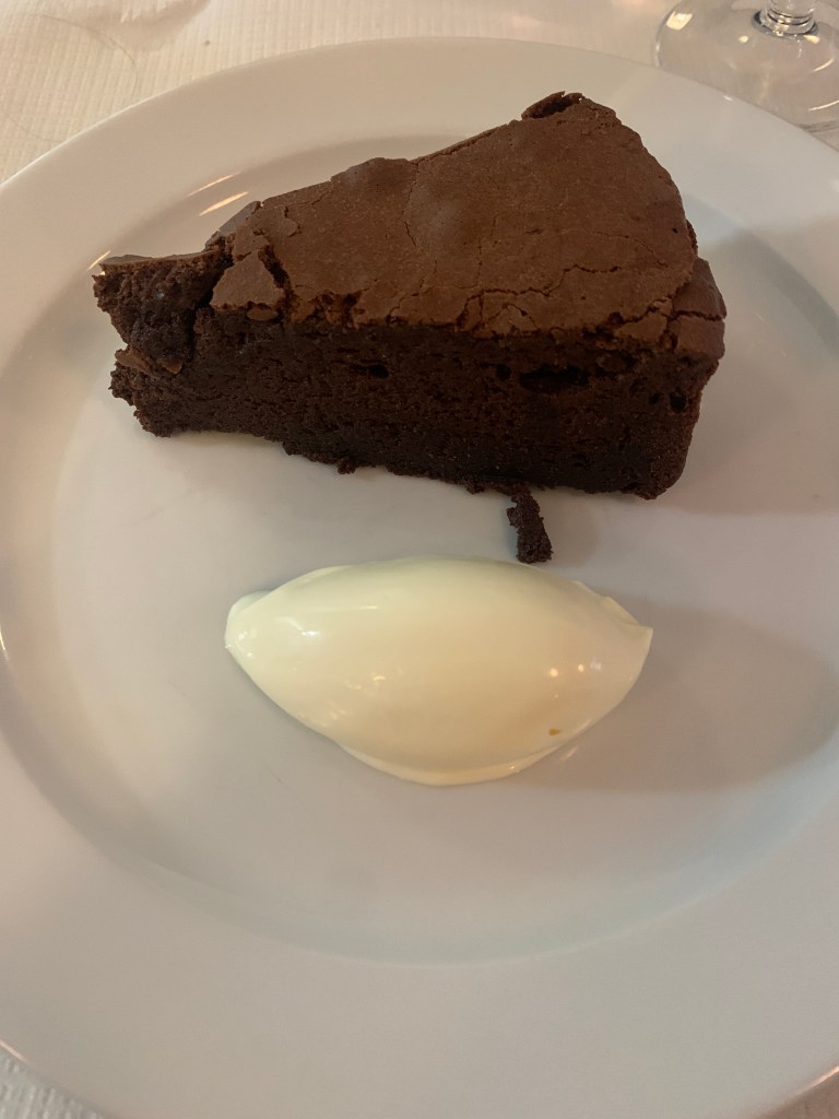 First challenge was approaching the wine list. It is vast, intimidating and largely French. So at this point I handed the reins over to my father. Trevor Gulliver’s influence is clear. We ordered a bottle of Cotes du Rhone to share. Soft, lush and the perfect accompaniment to our meal.