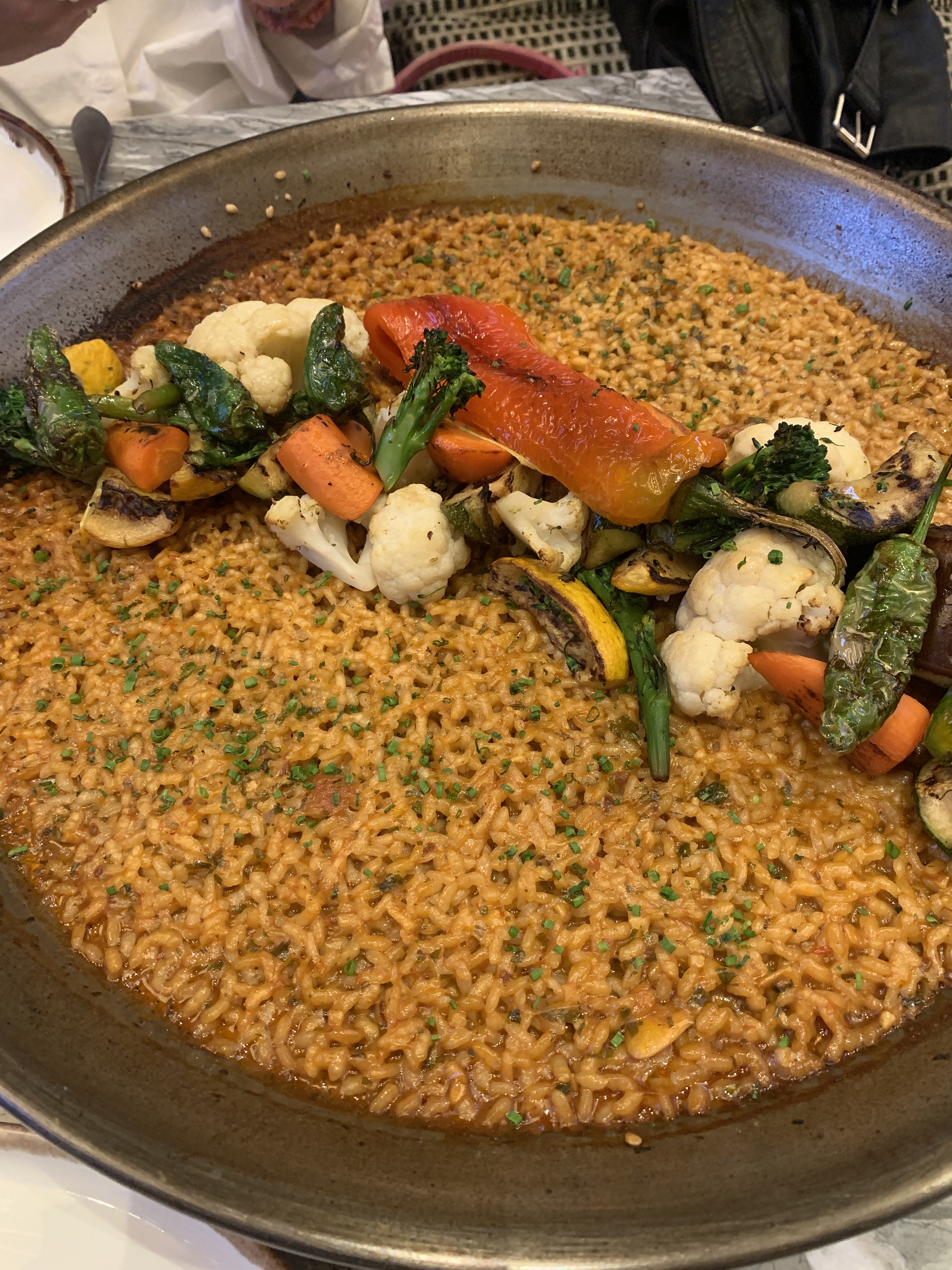 Time for the mains. We ordered the ‘Nod to Terraza Martinez’ seasonal legumes and vegetables rice. On a first glance, overwhelming would be the word that sprung to mind. I’m a fan of paella, don’t get me wrong. I agree with the concept and when done well, it’s worthy of celebration. But this was huge. Concerned yet optimistic glances were exchanged across the table. Upon the initial jab with the serving spoon, we found our eyes deceived us and the kitchen at The Campaner really knew their stuff. The rice is just thick enough to cover the base of the pan and is extremely feasible and flavoursome. The roasted vegetables on top were a variety of those in season: cauliflower, red bell peppers, carrots, courgette, aubergines. Simple? Sure, but it really was delicious, and we found ourselves scraping each last grain of rice from the pan. We finished with that perfect level of fullness. The one where you haven’t quite entered the comatose stage, you don’t feel unwell or ashamed at the volume of food consumed, but are simply in a state of serenity.