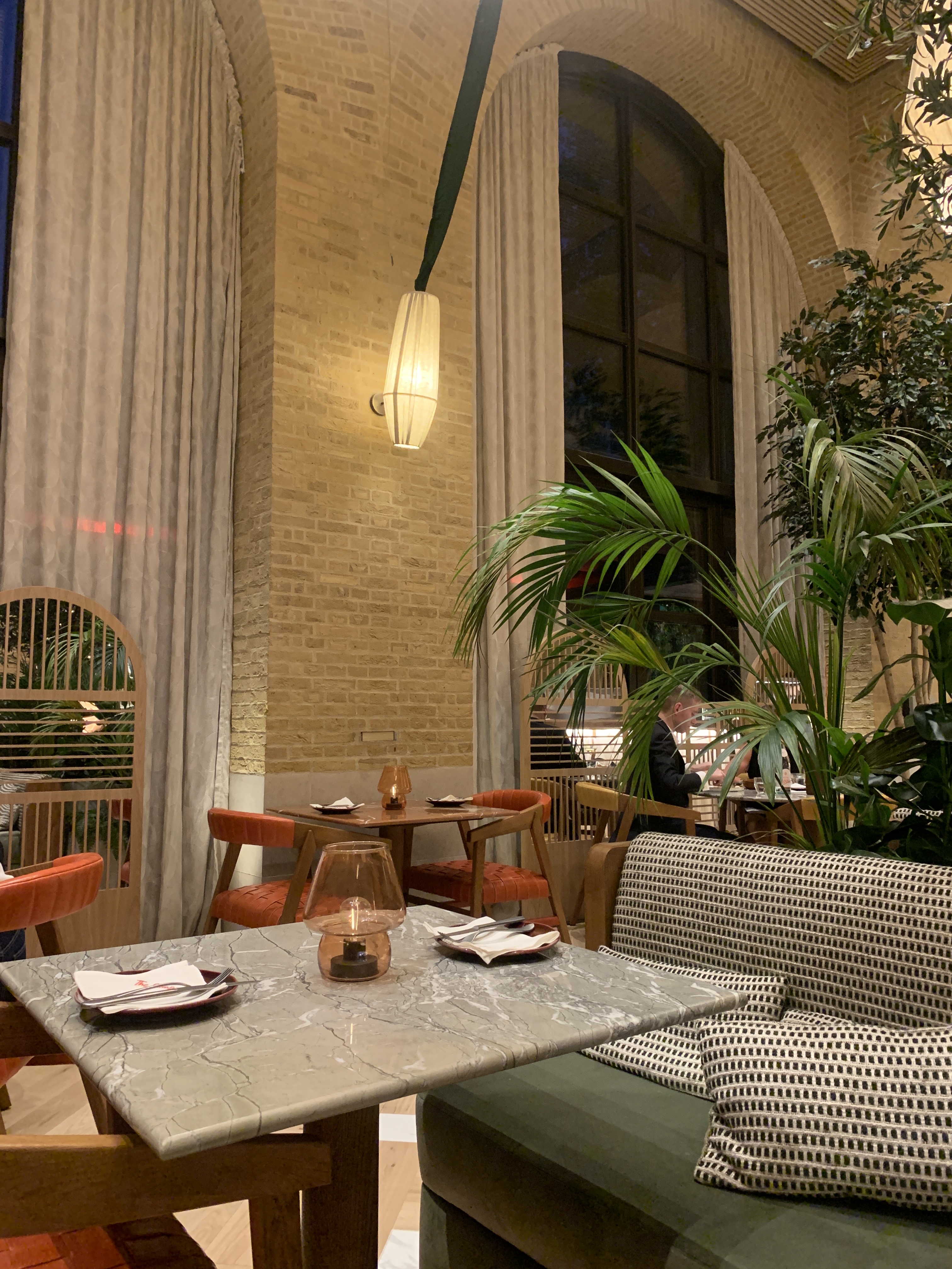 The Campaner was the destination of choice, or should I say Barcelona. The latest venture from the Los Reyes Del Mango restaurant group, which I’d love to describe as a ‘humble little abode situated in Chelsea’, but to be perfectly frank, it’s not one for modesty. With its high brick arches, Cathedral like interior, utterly enormous light features – the building is very impressive. The Campaner is hidden away in the serenity of the new Chelsea Barracks and shares a square with the recently restored Grade II listed Garrison Chapel. There’s a certain feel about this one, if you know what I mean. A cool terrace wraps around the building and offers an idyllic spot to enjoy the summer months over a glass of wine or a coffee.